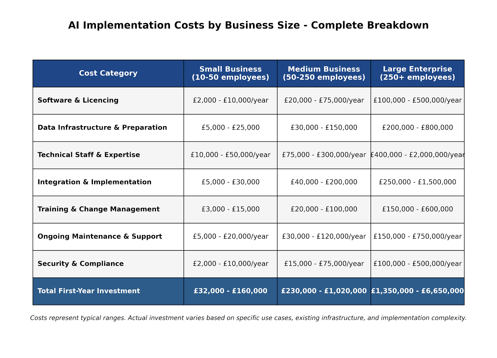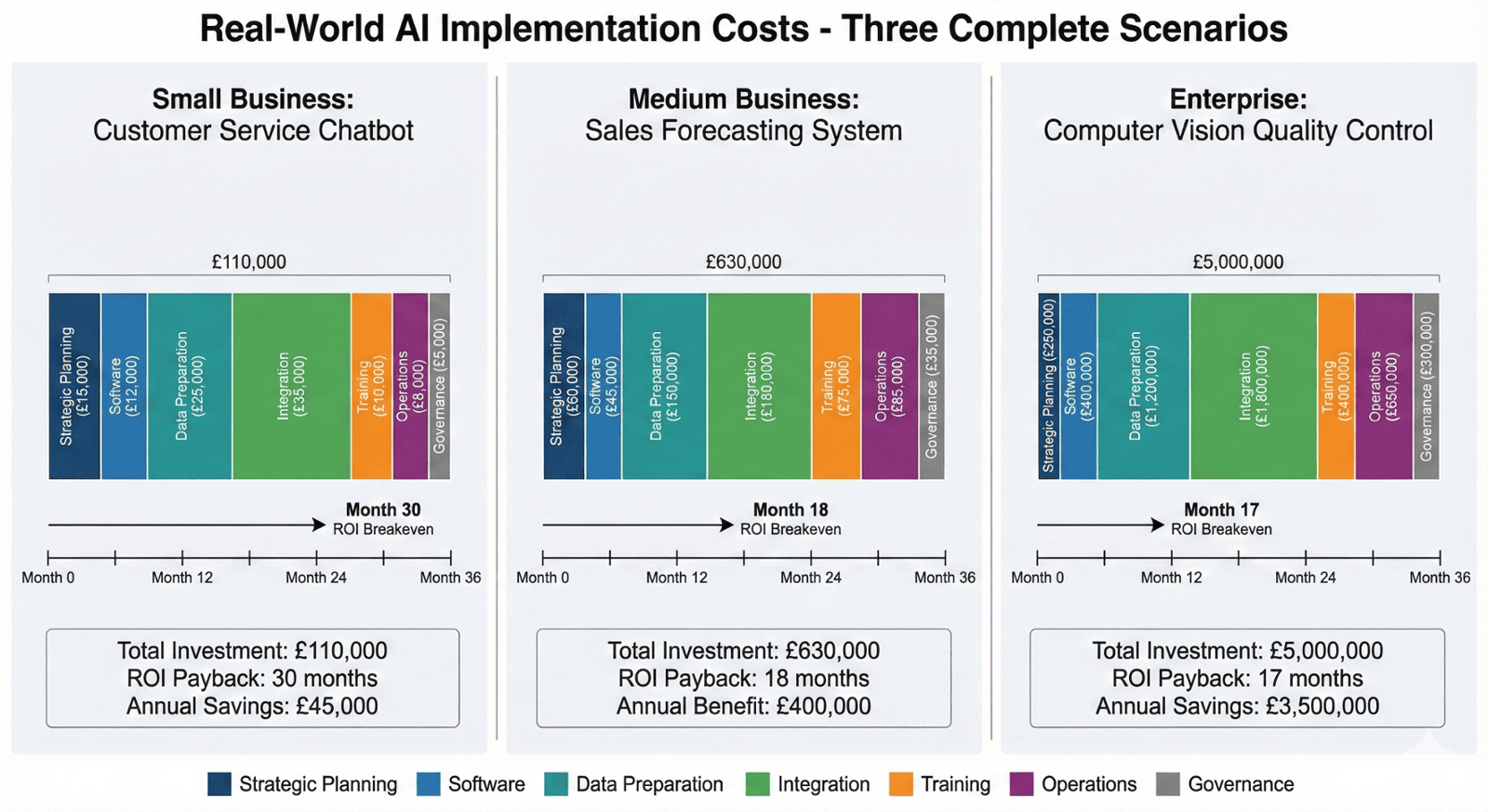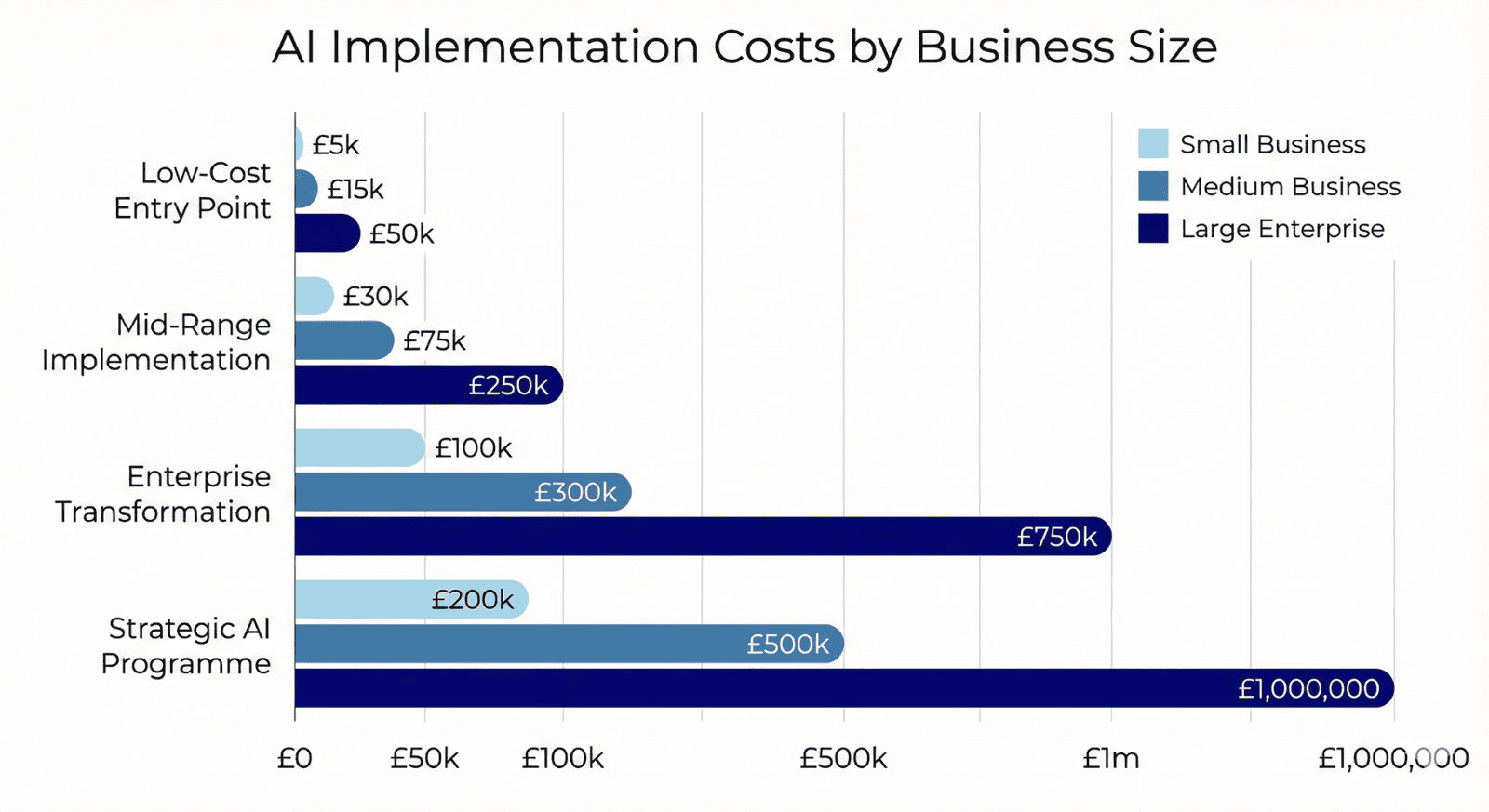 • Custom AI platforms: £50,000-£500,000/year